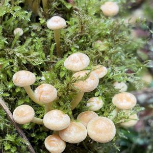 初めまして 菊池渓谷の菌ちゃん's ①ちっちゃい子😽 スギゴケ(?)に囲まれて ②綺麗なキノコ ③ナラタケ? ④やったね✌🏻 ホソエノヌカホコリ? ⑤ジクホコリの仲間? ??ばかりです🙂↔️ 名前を教えてくださーい 熊本 菊池渓谷