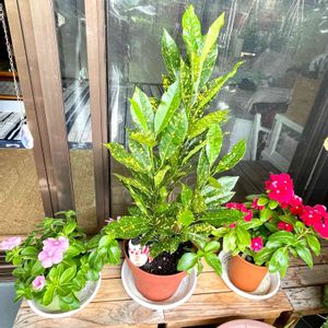 ダイソーのクロトンと挿し芽で育ってる日々草です。