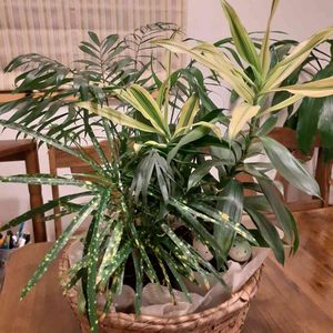 今日のお花 ドラセナと テーブルヤシとクロトン🌱 何年もこのまま😅なので、 皆さんのおしゃれな投稿を参考に春に植え替えてあげたいです😊