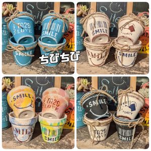 今回の出品 ちびちびsmileリメ鉢 メルカリ見に来て下さいね👀
