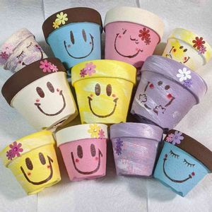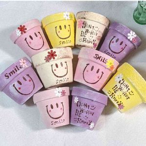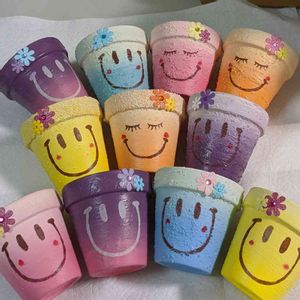 メルカリのぞきにきてね ちょっぴり大きめな smileリメ鉢作りました