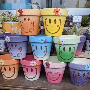 凸凹♥ザラザラの smileリメ鉢 メルカリのぞきに来てね