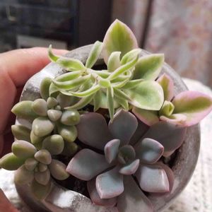 今晩は🤗もう一つ投稿しますねヾ(๑╹◡╹)ノ" 多肉植物の寄せ植えしました🥰🥰🥰 色合いを違う種類で寄せ植えしました((o(^∇^)o)) とってもとっても嬉しいです🥰💗💖💗❤️💓💛🧡 もう少し落ちついた挿し木をしたり葉挿しをして隙間を埋めていきます╰(*´︶`*)╯♡💛🧡❤️💚💓 🏷 オリオン 🏷 夕映え アエニオウム弁慶草科 🏷 初恋 グラプトベリア弁慶草科 🏷 恋心 セダム 弁慶草科 🏷 白絹姫 トラデスカンチア属 🏷 アーモンドネックレス ◎トラデスカンティア属(白絹姫)の特徴と種類・育て方 トラデスカンティア/白絹姫はこんな植物 アメリカ~メキシコに数十種類見つかっているものの、多肉化したものは「白絹姫」だけという小さなグループ。シラモンタナの名前で流通していることもある。夏型で冬に落葉し、春から再び新芽が吹いてくるタイプの植物で、寒さ暑さに強く日本でも栽培しやすい。ツユクサ科の数少ない多肉植物の一つで、銀毛冠(シアノティス属)、重扇(カリシア属)、ゼブリナ属などと共通点がある。 ◎育て方のコツ 真夏以外はよく日に当たる所に置く 冬場は地上部が枯れてしまうが、根は生きているので捨てないように 日本の草花と似た夏型サイクルで育てやすい 白い毛をきれいに育ててるには、できるだけ雨ざらしにしない。 秋が来たので元気にモリモリ育って可愛い花が咲くのが楽しみです♪(๑ᴖ◡ᴖ๑)♪⭐️⭐️⭐️⭐️⭐️