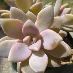 グラプトベリア🍀初恋(パープルキング) おはようございます🎶 今朝の気温1.1℃ 霜降りています😱 初恋さん蛍光ピンクになって可愛い~❤