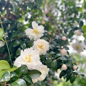 庭の山茶花は 未だこれからです 1️⃣ 藤棚下の白い山茶花は 油断していたら先日の蕾から もう開ききっていました 木全体に咲いて 雪が積もったようになる 景色を楽しみにしています 2️⃣ アプローチ沿いの花壇奥の 「朝倉」の蕾に赤味が! 3️⃣ …かと思うと木の中の方には 未だ白いこんな小さな 蕾もありました これからこの美しいお花がとても楽しみです 明日からガクッと寒くなるとか… 冬の訪れには緊張しますが 冬には冬の美しさを見られるのも 楽しみですね!