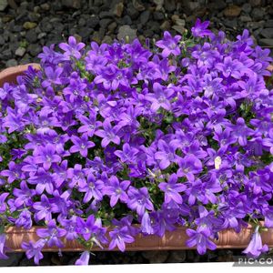 ❶ベルフラワー ベル型の小さな花をたくさん咲かせてくれました 花付きが良いので 見応えあります幾株もありましたので もっと大きな鉢にすれば良かったです🪴 ❷ユリオプスデージー 黄色いお花は とにかく元気もらえます🤗 ❸クレマチス 「勝利の女神」 ゆっくりと咲いてきました