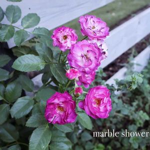 バラ、マーブルシャワーが咲きました✨ バラに興味が出始めひっそり増えはじめています 5年ほど前にお空にいってしまったイングリッシュコッカースパニエルの名前がマーブルでした🌈 そんなマーブルにピッタリのしかも探していたピンク→ブルー系の小花 上手に育てられますように✨