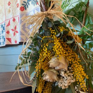 ミモザの手作りスワッグ 薔薇はラヴィニール