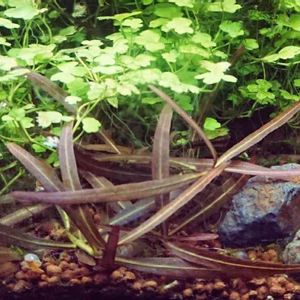 アラグアイア・ レッドシャープリーフ・ハイグロ (BIOみずくさの森) 赤紫というか濃いブロンズ色て言うか 先にググって映像をみて中景に良さそうって購入したのですが 「強光だと赤みを帯びて這います」ってなっているのですが、… … …結構しっかりはいます。 なので真ん中に植えた子達は見えなくなっちゃって…(((^_^;) 赤色の前景は貴重かも😳 あれだ、木立タイプのペチュニアのつもりで買ったら、実は垂れ下がるタイプだった(でもキレイ)ってプチショックな感じに似てるw