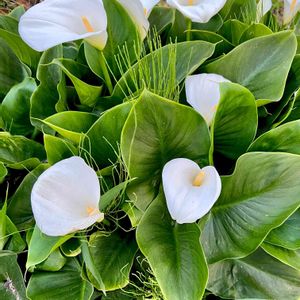 今日のお花💠カラー 続投になり失礼します 散歩道にある素敵なお花畑の上にも大好きなカラーが咲いています💓💓 スギナに負けないで😆 大きな株で見事ですがお花を撮りたいので少しだけ💚🤍 5月のpicより 🏷白い恋人達 参加します🤗