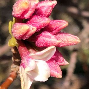 3月10日、鹿沼市内で出会った、やさしい香りを放ち、まだ咲き始めたばかりの「沈丁花」の花🌸