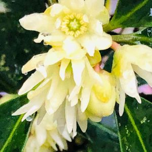 3月13日、市内で見つけた、やさしい香りで私を誘う、まだ咲き始めたばかりの白い「沈丁花」の花🌸