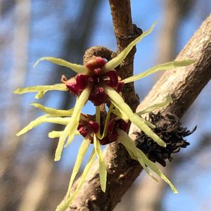2月22日、体力低下を感じながら、もう少し体力や筋力を維持できればと、約2年ぶりに軽登山⛰、(自分的には低山山歩と称して)古賀志山583mを歩いてみる事に、100も有ると言う、登山ルートの内以前の経験から、比較的緩い登りの東南稜をうっかり選択、しょっぱなから、登山者への注意として、伐採作業のため立ち入り禁止の注意書とテープが、行方を阻んだ❗️別ルートから東南陵に入り、ふと立ち止まった稜線沿いで、何百回も登っていたのに、この山で初めて見つけられたのが、冬枯れの木々の中に、咲き始めたばかりの、「マンサク」の小さな花🌼🌼🌼でした❣️