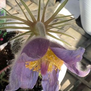 2月末日、下野道の駅で見かけた、うなだれた頭を、一生懸命にもたげようとする、いじらしい「オキナグサ」の妖精‼️