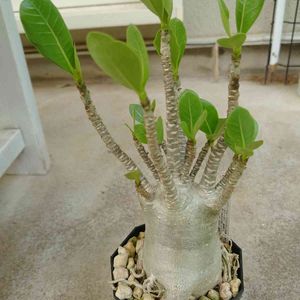 パキポディウム・ブレビカウレ 恵比寿笑い (白花) W 3.5cm やっと葉っぱが2枚💦