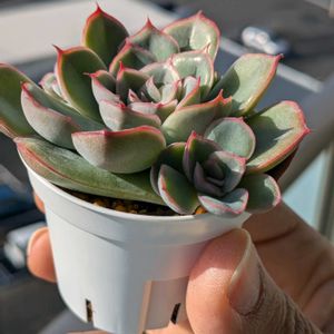 20241208 葉挿し隊ベランダ砂漠組です🌱 ①ヘラクレス胴切り頭さん。普及種ですがとっても綺麗でお気に入りです。下手くそな胴切りだったのにしっかり着いてくれました。スペースがなくて隙間に突っ込んだ葉挿しもワチャワチャ成長中😁 ②なんかね、中心点付近だけ紅いエッジが外側に回りません。日照不足? ③葉挿しトレーも元気です。隙間のところは実験的に親葉を早々に取ってしまったところ。あっけなく消えてしまいました😭親葉は大事✍️親葉のない実生は大変だ💦 ④親株や室内葉挿しより表情豊かなリラシナ×アガボイデス。この子は葉挿しでも外管理問題なしです。 ⑤アズールブルー。ホムセンで徒長してたのを救出、というか葉挿し実験のフィーダーに使って🙏、一応葉挿しもしておくか、と2枚だけ挿したもの。なんか、ちょっと、カッコよくない?😁親株から想像できないフォルム。普通に育てれば縦にビロビロ伸びないのねん😘