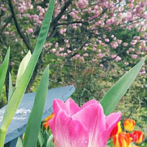 チューリップWith...桜 まだまだ春を感じております(ง ´͈౪`͈)ว