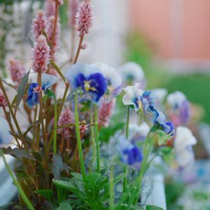 * すみれ図鑑のこのグラデーション加減がたまらんですなあ! 手前のセロシア(ケイトウ)も可愛くて好き🫶