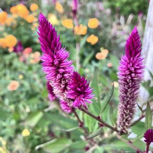 ノゲイトウ(セロシア) ①絡まっちゃったノゲイトウ😁‼️ ②普通のノゲイトウ😙 「セロシア」とはギリシャ語「燃やした」が語源となっている 生薬名に花を使用した「鶏冠(ケイカンカ)」、ノゲイトウの種を使用した「青箱子(セイソウシ)」があるそうです。