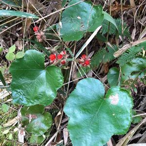 花友さんのお写真見て気になっていた(サネカズラ) ご近所さんが「川岸にあるよ」と教えてもらい 昨日の夕方 ワンコの散歩の前に行って来 ました😊 ワンコは散歩と勘違い🤣吠えるのを振り切って サネカズラ あちこちに木があり😳✨ シロダモ 主人が好きな冬イチゴも 初めて見た ヒサカキの実 久々の山の探検 楽しかったです♥️