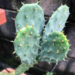 🌵ウチワサボテン💚 先日投稿してからすくすく育って四つ葉みたいになりました〜🍀 重いのか根元の方はどんどん倒れ気味 切り離しも考え中〜 良いことあるかな〜ありますように🍀