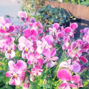 今朝の ウサギ🐰ビオラ🌿 元気いっぱい☀小うさぎさん達🐰 どんどん増えて玄関を明るくしてくれています💓