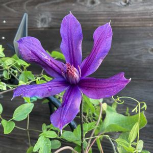 うちの庭のクレマチスもポツポツ咲き始めました✨ 渋いお色の『藤かほり』さん💜 黒い茎が渋さマシマシです(* 'ᵕ' )☆ わりと小さめのお花ですが とっても丈夫なんです!