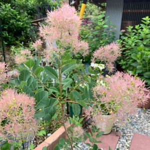 ふわふわスモークツリー💗 去年、10cmくらいのふわふわが 1個だけ付いた幼苗を購入 今は1mくらいに成長して たくさんのふわふわを付けてくれました🫧 成長が早いので今年は鉢増ししないとな🫡