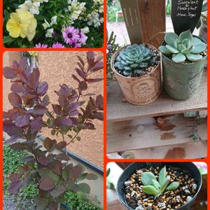2022/4/20 スモークツリーとユーカリさん ライトグリーンの葉が若々しくて いいですね 🍀🍀🍀