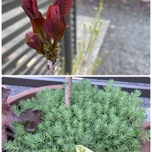 前にPostしたスモークツリーの成長記録。左から右に経過をたどると順調に育っている様子💕もふもふとしたスモークになってほしいな〜😍5月頃にはもふもふするのかなぁ〜?✨