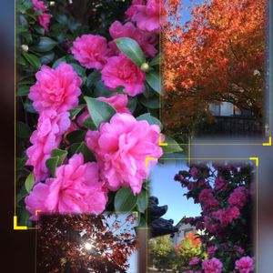 おはようございます☀ 紅葉と満開のさざんか 身近で、、、見つけました。 華やかな色だけど冬の花。