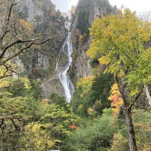 北海道 層雲峡 大雪山国立公園 銀河の滝 ちょっと雨がパラパラ 悪天候でしたが、久しぶりに来た層雲峡 先客は、どちらからいらした人でしょう? 周りはすっかり晩秋 本日、大雪山系旭岳🏔初冠雪 2021.10.6 層雲峡にて