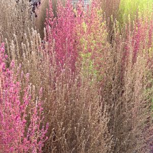 コキア どこのコキアも色付いていると思いますが、この緑色から赤へと変わりつつのグラデーションが、素敵色 👀😍 細かく分析したら、何色あるかな? これに似たような、染めの毛糸を買いました🧶 冬に向けて、何か、編もうかな、、、、❄️☃️