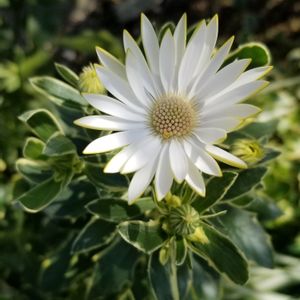 こんにちは。 お庭パトロールしてきました。 2年目 オステオスペルマム バリエガータ。 白い花が、咲いていました。 とても嬉しいです。 蕾も、たくさんあるので 先が、楽しみです。 株元に葉がなくて、暴れた枝の先に、蕾、花芽が、あります。 切り戻し剪定したら、 挿し木で、更新したいです‼️