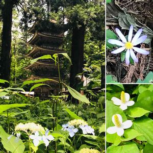 2446の石段を歩いて 出羽三山神社へ⛩ 紫陽花 スムースアスター ドクダミ