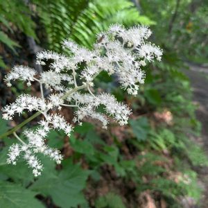 ヤグルマソウ(矢車草)…ユキノシタ科ヤグルマソウ属の多年草✨🤍🍀 小さな可愛いお花の集合体、初め見た時はお花の存在感にビックリ!! 葉は5枚の小葉が円形に配列された特徴的な形、鯉のぼりの竿の先端に付ける矢車に見立ててヤグルマソウの名が付いたそうです。 ☆GSを始めてからヤグルマソウとヤグルマギクの違いを知りました。 白骨温泉にて…
