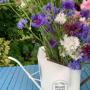 矢車草も そろそろ終わりです☺️ 種を取り きれいな枝をジョウロに 飾って記念撮影です。 夏に向けて 庭を整理しました☺️💕 スッキリ〜