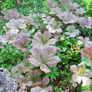 山野草 ヤグルマソウ 矢車草 鯉のぼりの竿の先でクルクル回る矢車のような葉っぱ、新芽が開いてました。 お花はもう少し先のようです。 ヤグルマギクとは別の植物です。