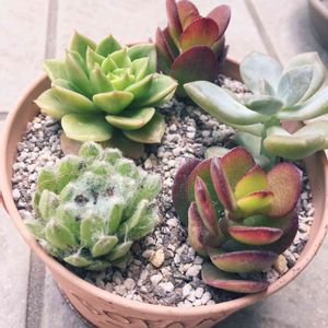 2週間前に植えつけたセンペルビウムたち。 見比べると、ずいぶん赤くなりました。 最近寒いからね…( ̄▽ ̄;)氷点下5度とかだし。 天気が良いので水をあげました。 実はセンペルビウムを冬越しさせるのは初めてなので、お世話の仕方が良く分からない💦 でも寒さにかなり強いセンペルビウムだから、きっと水をあげても大丈夫、なはず。