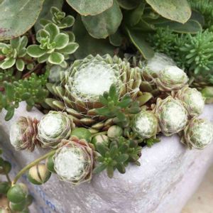 センペルビウム、巻絹❤ 今日は朝からずっと雨☔ 午後からお仕事が休みだったのでずっと気になってたセンペルビウムのお子ちゃまをカットしてチマチマ挿し木してました😅 雨のあたらない軒下で作業してたけど終わった後、気が付きました、蚊に何ヵ所も刺されてることに〰😓 これからの季節、ガーデン作業は蚊との勝負ですね💪