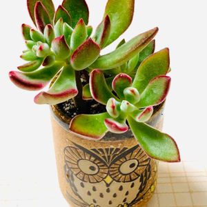 ちまるさんに感化されて、家のハムシー君が大きくなって葉先が赤くなるのが待ちきれなくなりお持ち帰りしました。フクロウの湯呑みに植えてみました。