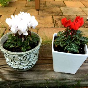 昨日、白いガーデン シクラメンを買いました😊 今日、植え替えをしようと思ったらこの可愛い子に似合う鉢がなくて買いに行きましたら…赤いガーデン シクラメンも買ってしまいました😅 赤い子には白い鉢をチョイスしてきました😊 初めて育てるので上手くお世話が出来るか心配ですが頑張ります✊🏻 何度見てもやっぱり可愛い。