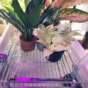 これうちの栽培棚の下段 本来は水中ポンプで水を循環させ シャワーヘッドで簡易な滝をつくり 空気の流れを作ったり 気化熱で温度を下げたり 湿度を上げたり と様々な効果を期待したが 落差をつけると 水がはねまくったり シャワーが細かいのでよく詰まったり してイマイチでしたが、 水耕栽培のアグラオネマやポトス達には なかなか良さそうである。