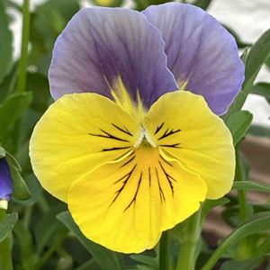2月22日はニャンニャンニャンの日❣️ みちのすけさんの🏷️ニャンニャン祭りに参加します🐈🐈 上はみるく おっとり男子7歳 下はくるみ やんちゃ女子8歳です。 お花は11月購入の見切り品セットに入っていた パンジー プティ・シャトン かわいい子猫 フェリックス です。 2回目のお花がようやく咲いてきました😊 どのへんが子猫なのか⁇私にはイマイチ分かりませんが、2色咲きのお花がかわいいです💛💜 プティ・シャトンは『かわいい子猫』を意味するフランス語が由来とのこと。-ラベル裏面より