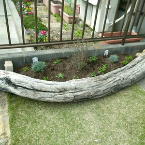 拾った流木で花壇が完成。 もう少し広く取りたかったけど、右側が自転車置き場なので通りにくいと息子の不満にならないようこの大きさに。 ラベンダーグロッソ、マヌカハニー、ノースポール