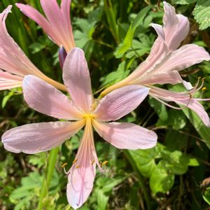 終わりかけではありましたがナツスイセン(夏水仙)と出会いました😊 ナツスイセンはヒガンバナ科のお花で古くに中国から渡来した帰化植物と考えられています。 日本では本州から九州にかけて分布し山野、野原、道端などに群生します。 名前の由来は葉と球根がスイセンに似ていて夏に花が咲くことからと言われていますが花期に葉がないことからハダカユリ(裸百合)とも呼ばれることも。 また地方によってはカラスノカミソリやピーピーグサなどで呼ばれているそうです。 因みに学名はリコリススクアミゲラです。 『🏷️桃色百花繚乱』