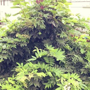 庭の白藤 昨年夏に植木屋さんに大幅カットして 貰ったため、花が少ないです(/ _ ; ) 今年は、5月に切ります^o^