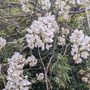 白藤 これが見たかった〜😄 桜の咲き終わり、10日くらい後が咲きごろだなーと思っていますが、ときどきズレちゃう💦 今回は成功しました! 白藤はとある病院の目立たないところに咲いてます 咲いていても、いつも誰もいません😅 楽しみにしてるのは私だけなのかな〜? 写真4,5は外出先の公園 紫の藤🪻 溢れんばかりに咲いていました