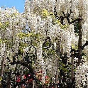 🌿🤍白藤🤍🌿 滝のように咲いていました🌀 バラ園のカフェの周りで咲いているお花たち 紅いシャクヤクは毎年ここで開花