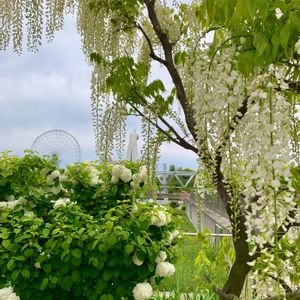 白藤🤍とオオデマリ🤍と太陽の塔☀️ 2023/04/24 万博記念公園平和のバラ園